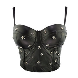 معدن نجمة الديكور الأسود بو الأشرطة Underwire السيدات ضيق أنبوب حمالة الصدر صدرية سترة النساء فو الجلود قمم المحاصيل مشد دي موهير