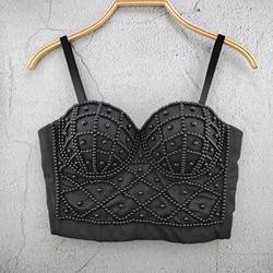 مثير ملهى ليلي الرقص داخل التفاف الصدر قميص قصير لؤلؤ ملابس خارجية تجمع مشد السمكة أعلى سترة