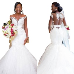 فستان زفاف حورية البحر طويل القطار بكشكشة حسب الطلب من الدانتيل مطرز بالخرز مقاس كبير أفريقي