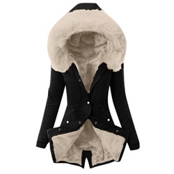 2025 Color sólido de longitud media cálida prendas de vestir exteriores trabajo diario y trajes casuales invierno nueva chaqueta gruesa con capucha para mujer